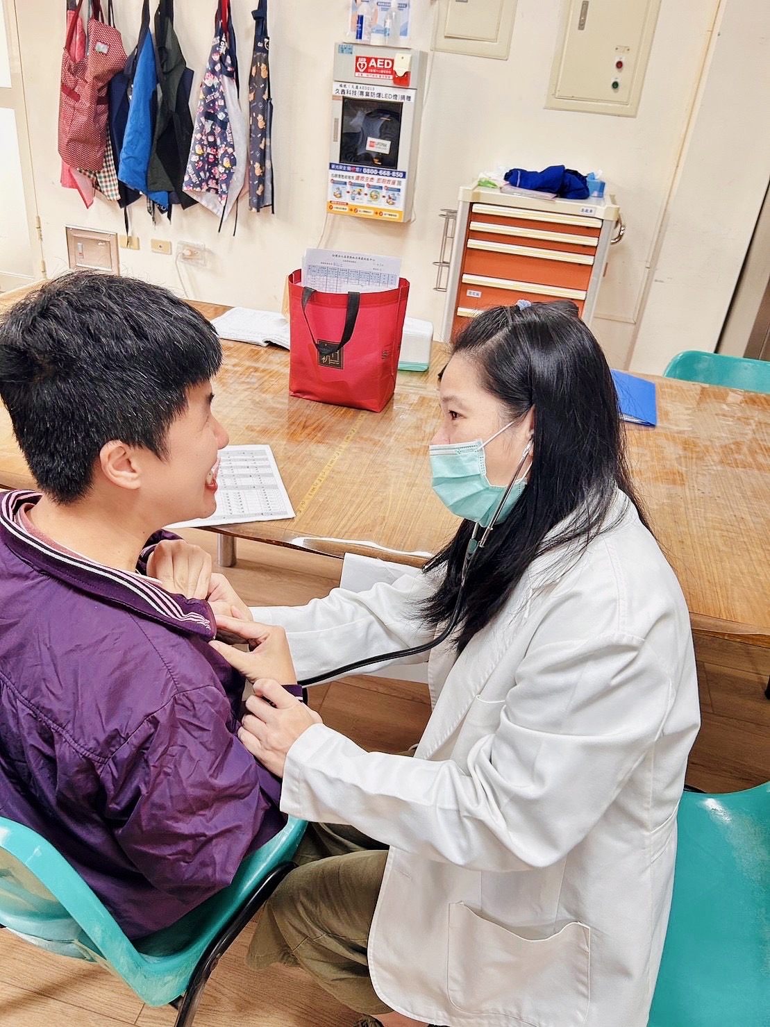 在這個大家庭裡,她耐心傾聽、溫柔陪伴,面對大朋友們突如其來的情緒波動、身體狀況的變化,總能冷靜應對,讓每位服務對象在心安與溫暖中度過。當緊急狀況發生,她迅速判斷、果斷行動,確保每一位大朋友的狀態都能及時得到照護。